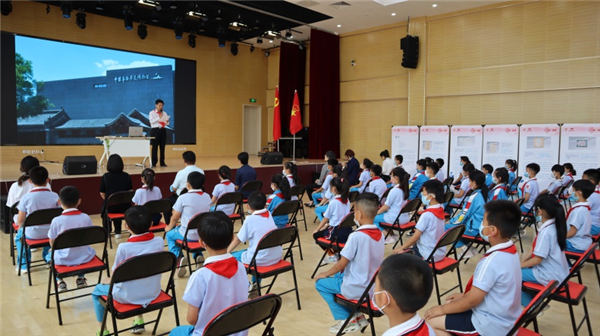 为庆祝中国共产党成立100周年,深入贯彻落实习近平总书记关于开展爱国主义教育的重要讲话精神和中央宣传部等9部委印发的《关于推进博物馆改革发展的指导意见》,6月21日,中国华侨历史博物馆馆长臧杰斌率展出服务部人员赴北京市东城区东四九条小学,参加由北京市委宣传部主办,北京广播电视台北京时间承办,中国华侨历史博物馆具体协办的“流动的爱国主义教育基地巡展”进校园活动。
