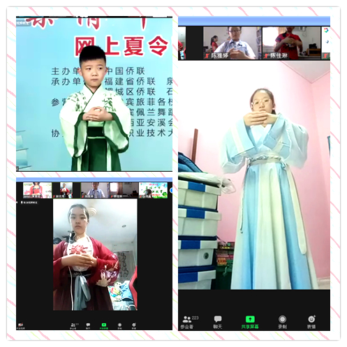 着汉服,学古礼。“学会古代揖礼的瞬间,让我一下子记住自己的根脉来自礼仪之邦——中国”,菲律宾营员芷晴激动地说。“亲情中华?为你讲故事”网上夏令营第四期泉州营举办的传统礼仪知识云课堂受到营员们的由衷喜爱,高级礼仪培训师陈玲玲老师带领营员们在线学习古代三种揖礼,为营员们讲解如何施礼,再到形象礼仪、介绍礼仪、形体礼仪、相见礼仪等各类礼仪知识,中华五千年文明礼仪之风在云端屏幕脉脉地流淌着,在营员们躬身揖礼的影子中静静地传承着。