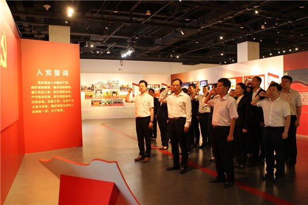 入党誓词是中国共产党百年奋斗不息的铿锵呐喊,凝结着百年来中国共产党人用鲜血和生命铸就的铮铮誓言,彰显着百年来中国共产党人独有的红色气质,承载着百年来中国共产党人所坚守的初心和使命。誓言铮铮、其心拳拳。今天,在中国华侨历史博物馆“百年航程 赤子侨心——庆祝中国共产党成立100周年主题展”的结尾处,支部书记臧杰斌带领全体党员在鲜红的党旗下,整装肃立,举起右拳,庄严重温入党誓词。铿锵有力的誓言,宣示着每一位党员对党的坚定信念,为党的事业奋斗终身的决心,对锲而不舍、努力奋斗、实现侨博五年发展规划的信心。