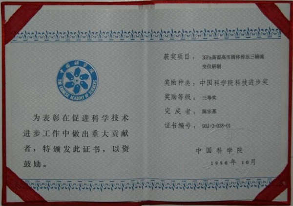 图2 陈宗基荣获中国科学院科技进步三等奖