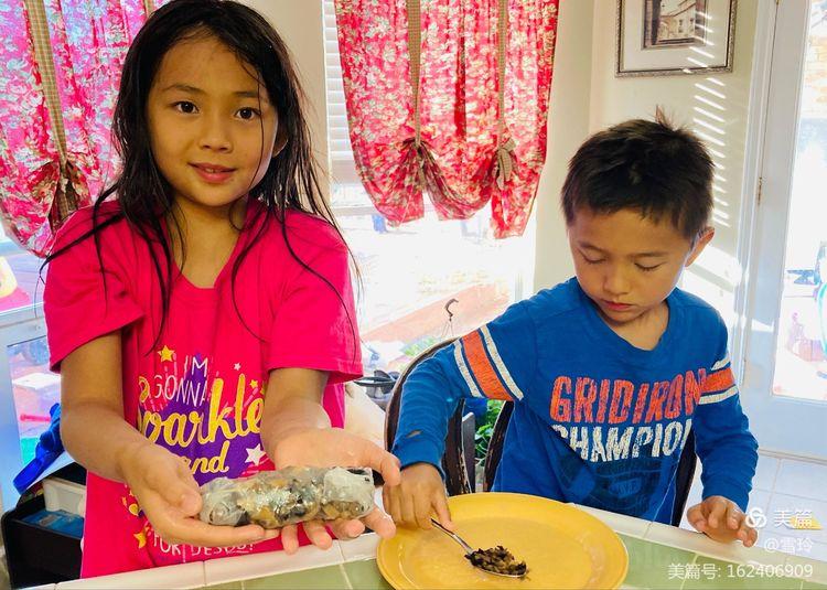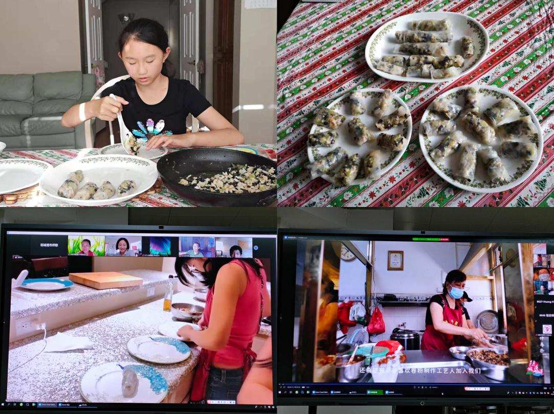 观看完讲述华侨卷粉故事的视频,营员们全家大小齐上阵,边听视频讲解,边动手制作卷粉。左右卷一卷,上下包一包,不一会儿,卷粉就做好了。在大家的巧手制作中,一盘盘馅料、一张张米皮,变成了一条条Q弹爽滑,美味可口的卷粉。来自德州的营员蔡宁娜和蔡莱恩二人三岁的小弟弟里根也参与到华侨卷粉的制作当中,他欢欣雀跃地把自己动手包好的卷粉高高举在手中给大家看。
