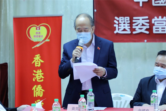 香港侨友社会长黄英来致欢迎辞表示,中国侨联属全国性团体,这次担任选委的中国侨联香港地区的委员,对国家事务有比较多的了解,有利于在选委会中强化国家因素,有利于维护国家利益和维护香港利益。担任选委是光荣的,责任是重大的,任重而道远。希望选委们牢记使命,广泛听取基层群众意见,为确保“爱国者治港”把好关,为“一国两制” 可以在香港顺利实施。