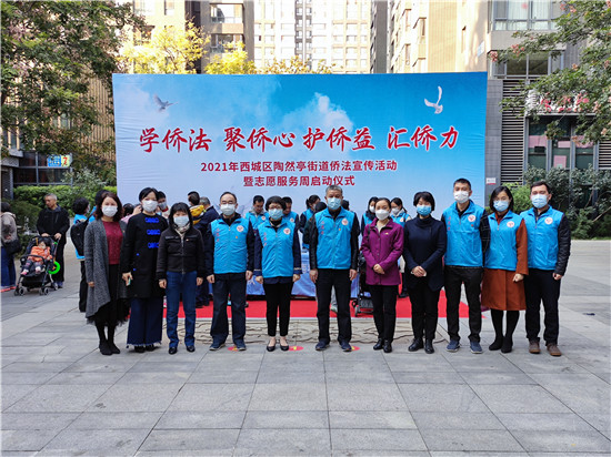 活动期间,权益保障部、基层建设部领导与北京市、西城区侨联领导共同为西城区侨法志愿服务队颁旗并赠送志愿服务用品,向陶然亭街道“为侨服务优秀单位”、第一届“陶然侨星”颁发证书,并赠送侨法宣传礼包。权益保障部、基层建设部党员同志还与有关志愿服务队一道,在设置的侨法宣传、法律咨询、养老咨询、防诈骗、义诊、垃圾分类宣传、免费服务等展台,现场开展侨法宣传和志愿服务。随后,考察了西城区陶然亭街道侨胞之家建设情况。