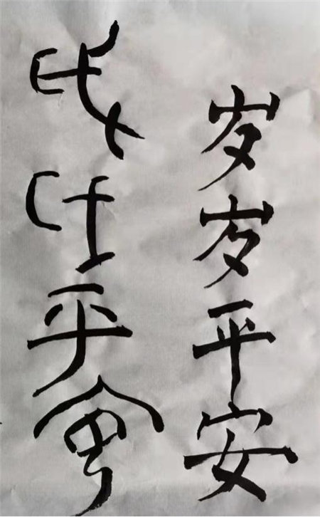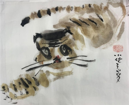 有的小营员用甲骨文写下自己的生肖“虎”,班主任老师进一步引导大家以“壬寅虎年”为主题作画,表达人们对新一年虎虎生威、蓬勃发展的美好愿景。