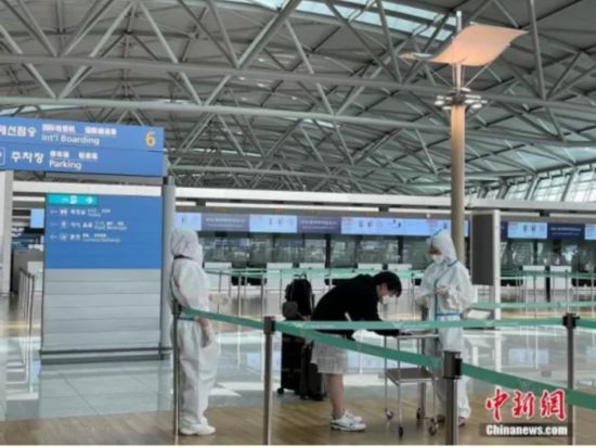 资料图:5月7日,韩国仁川国际机场工作人员严格执行防疫措施。中新社记者 刘旭 摄