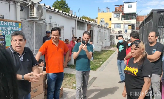 近日,应布市议会和罗斯·皮罗斯社区负责人玛利亚·露娜求助,在布宜诺斯艾利斯市议会克劳迪奥·罗梅罗议长陪同下,阿根廷华人义工协会一行在何雄明会长的带领下带着援助物资来到布市罗斯·皮罗斯贫困社区,给他们送去急需的食物及清洁用品,受到该区居民的热烈欢迎。当天出席活动的还有布市13区区委陈源志和议长助理,罗斯·皮罗斯社区管理团队,阿根廷华文教育基金会会长刘芳勇,阿根廷中国青年足球协会会长陈洁及部分华人义工协会成员陈铭、李朝铭、林琳、林秀玲等。