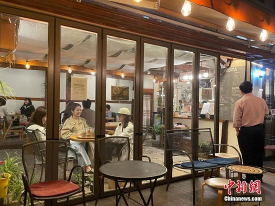 图为韩国民众当晚在首尔麻浦区一咖啡厅聚会。中新社记者 刘旭 摄