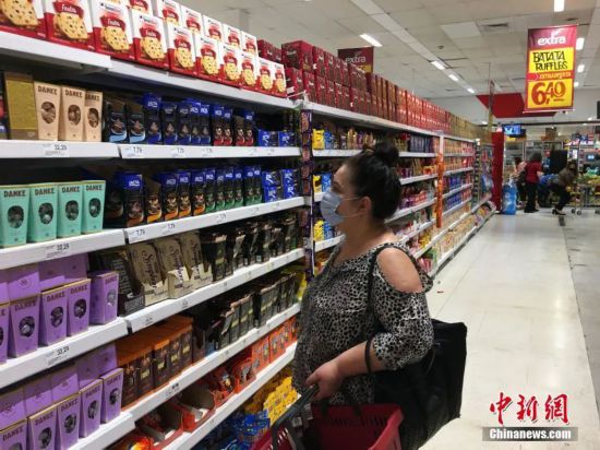 图为在巴西圣保罗,一名妇女戴口罩在超市内购物。中新社记者 莫成雄 摄