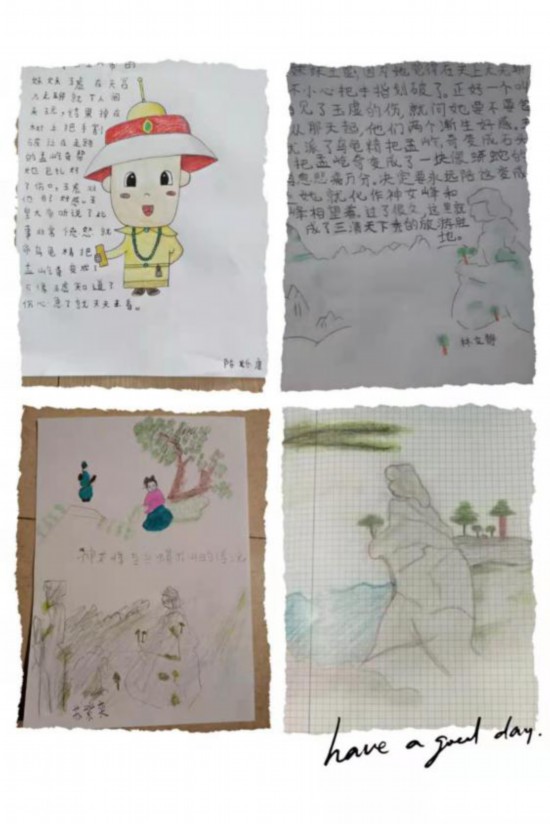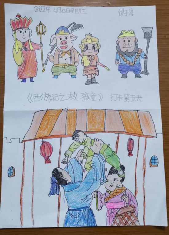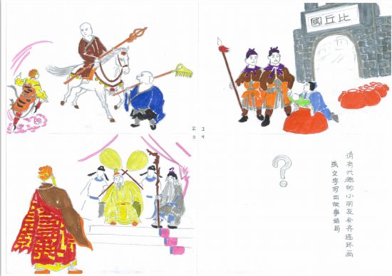 上饶市侨联专门创作了《西游记》“小儿国”故事四格连环画,以连环画形式向海外华裔小营员讲述唐僧师徒四人在比丘国为解救无故失踪的幼童和处于水火之中的百姓,齐心协力勇斗鹿妖的故事。营员们也充分发挥想象,畅游在《西游记》的奇幻世界中。