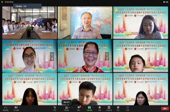 为促进中外青少年友好交流,搭设联通中外的友好桥梁,29日,一场海外华裔青少年与暨大东莞港澳子弟学校交流活动在云端举行。美国犹他东方中文学校校长万乐、美国全美中文学校协会夏令营总负责人李竹老师、海外班主任陈惠老师,暨大东莞港澳子弟学校执行总监易丽华女士、张太平校长、暨南大学华文学院周梅莎老师等共同出席了交流活动。海外营员首先通过镜头参观了暨大东莞港澳子弟学校的图书馆、教室、运动场、学生宿舍,了解了国内学校课程设置、所学语言、日常活动等,国内学生则通过视频分享了各自所在兴趣小组的手工、绘画、美食作品。随后双方学生就广东饮食文化、电影、兴趣爱好、语言、一日生活等共同感兴趣的话题进行了热烈的互动和交流,原定40分钟的交流活动持续了近1个半小时。通过这次交流活动增进了中外学生之间的了解,拉近了彼此距离。