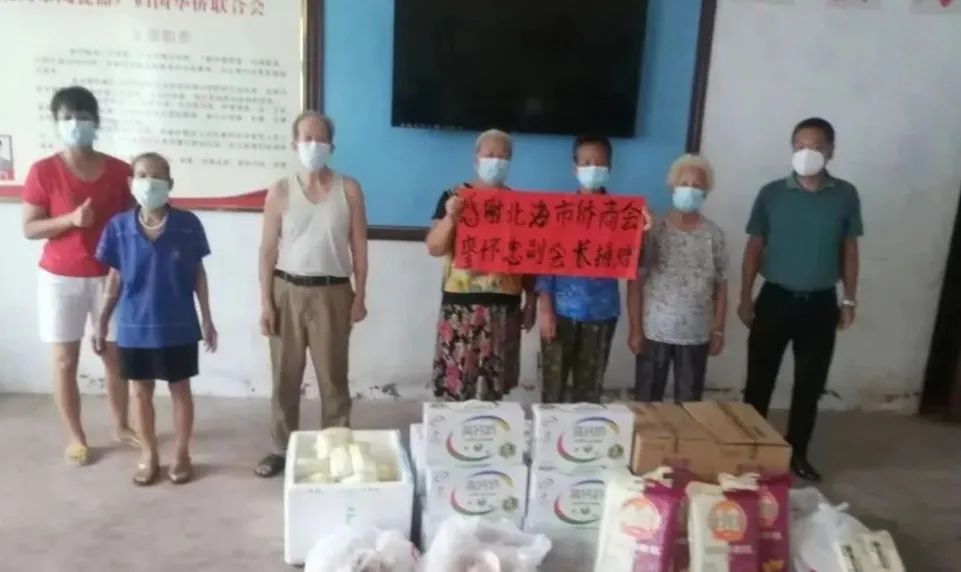 市侨商会副会长、北海市海晟电力有限公司副总经理廖怀忠组织企业员工转运北海市铁山港方舱医院建设所需的电器设备及线路抢收,并为年迈老人留守的高德华侨新村捐赠了一批食品、医疗用品,解了老人们的燃眉之急。