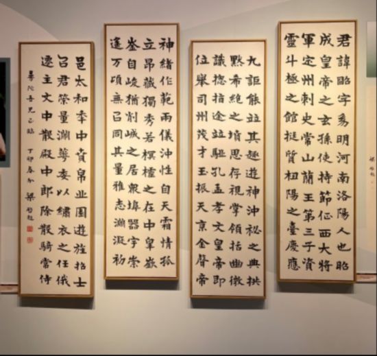 在参观过程中,程学源一行认真听取讲解,不时就艺术作品的内容、构图、技艺、内涵与参观人员亲切交流。
