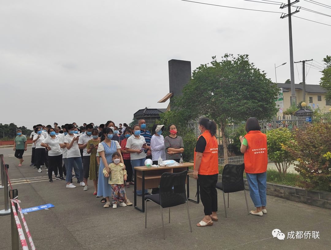新津区侨联主席梁志川第一时间深入马王村、玉龙村调研指导。玉龙村党委书记杨兵,花桥街道马王村党委书记苟萍和普兴街道统战干部李文琼积极组织“侨胞之家”党员干部持续“战斗”在核酸检测一线。“大家注意戴好口罩”“排队间隔一米”“请提前打开健康码,以便工作人员核验”,在每个社区,侨联党员干部在认真做好自身防护的情况下,各负其责,维持现场秩序,配合社区工作人员为核酸检测工作布置采样场地,采样中耐心引导群众保持安全距离、做好信息登记、进行核酸采样、疏导群众、规范有序离场。