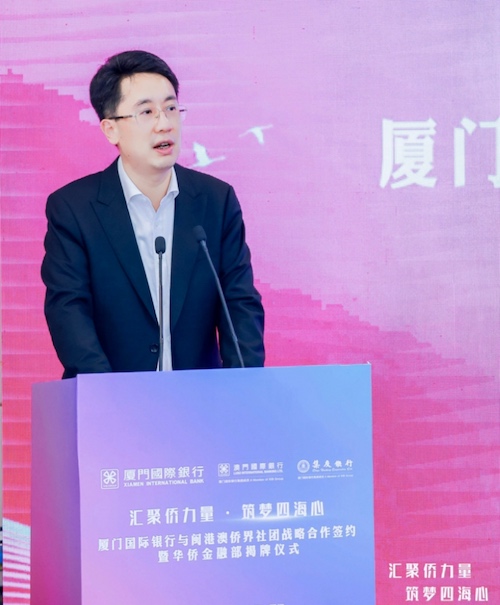 厦门市金融局局长朱庆华在致辞中指出,新时代下,发展华侨金融更是赋能华侨华人经济圈高质量发展,助力现代化强国建设的有效载体。本次厦门国际银行与闽港澳侨界社团战略合作签约、成立华侨金融部,为推动闽粤港澳及东南亚和谐发展搭建了一座“新桥梁”。
