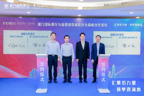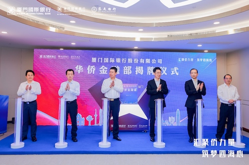 9月6日,厦门国际银行与闽港澳侨界社团战略合作签约暨华侨金融部揭牌仪式在厦门举行。福建省委统战部常务副部长、福建省侨办主任黄进发,全国政协委员、中国侨联兼职副主席、福建省侨联主席陈式海,全国政协委员、中国侨联常委、澳门归侨总会会长刘雅煌,厦门市委统战部副部长陈宏,福州市侨联主席林高星,厦门市侨联主席陈俊泳,厦门市金融局局长朱庆华,人行厦门中心支行副行长赖永文等出席签约揭牌仪式。全国政协常委、中国侨联兼职副主席余国春,中国侨联兼职副主席、中国和平统一促进会香港总会理事长卢文端,中国侨联兼职副主席、澳门特区全国人大代表、澳门归侨总会永远会长刘艺良,陈嘉庚先生长孙陈立人发来祝贺视频。中央政府驻港联络办经济部、中央政府驻澳联络办经济部以及多地侨务部门、海外商会、华侨院校共73家侨界单位发来贺信。