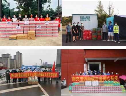 南充市侨联、南充市侨商会在得知南充市顺庆区综合行政执法局急需口罩、水等物资后,立即发起捐赠倡议,华中建设集团、尚品时代商业管理公司、泽苍医药有限公司等会员企业积极响应,募集善款采购口罩7000只、矿泉水100箱、方便面50箱。