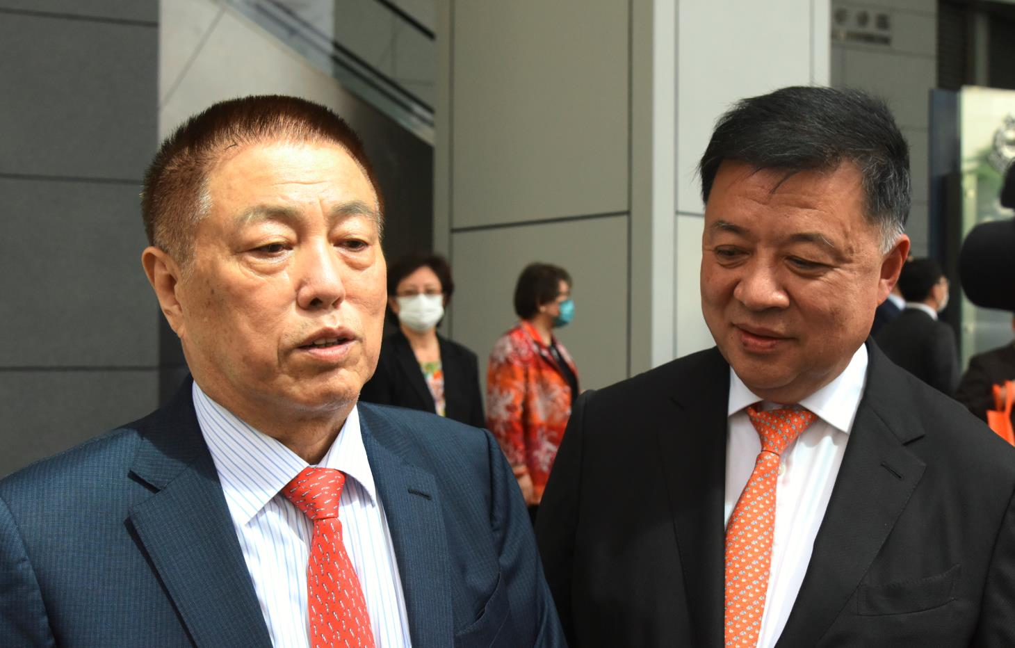 沉家燊(左)称,任何支持“台独”、企图把台湾从祖国分裂出去的图谋都注定是搬起石头砸自己的脚,结局注定是灭亡。