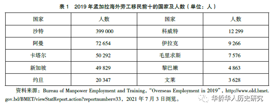 (摘自:吴元:《孟加拉国海外劳工移民及其治理研究》,《华侨华人历史研究》2022年第3期。注释从略,如有需要请参见原文。)