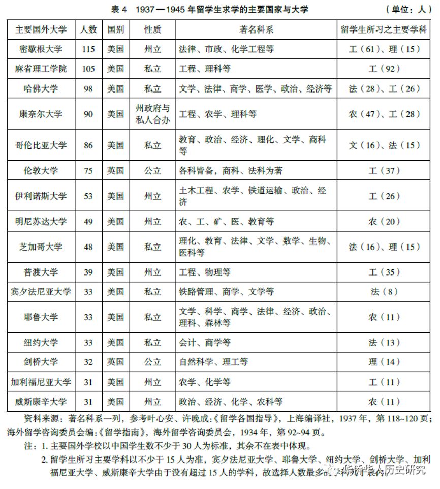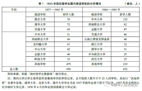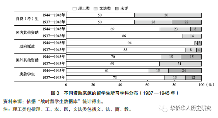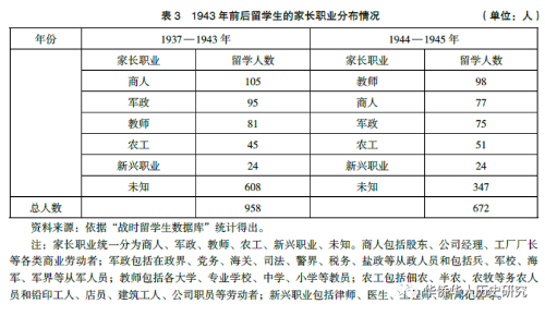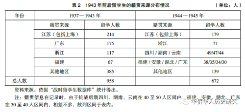 (摘自:杨莉:《全面抗战时期出国留学生群体特征之转变——基于战时留学生数据库的比较分析》,《华侨华人历史研究》2022年第3期。注释从略,如有需要请参见原文。)