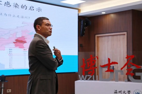 本次“侨遍世界 留在温大”与温州大学“博士论坛“同期举办,也充分体现了温州大学的开放、务实和合作精神,温大学术交流中心主任、图书馆党总支书记冯方盛和温大侨留联常务副主席包含丽也分别发表了热情洋溢的讲话,论坛由图书馆杨峰副研究馆员主持。温州大学侨留联主席张一力对在场的师生表示感谢,并表示“侨遍世界 留在温大”论坛活动将定期举办,每次会选择来自不同学科的老师来共同分享,除继续跟图书馆合作之外,后续活动也将走进侨乡,跟侨团和侨企合作,将充分发挥温大侨留联智力密集的优势,服务温州的高质量发展。