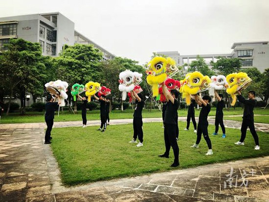 赵伟斌为华南师范大学音乐学院硕士研究生培训狮艺。