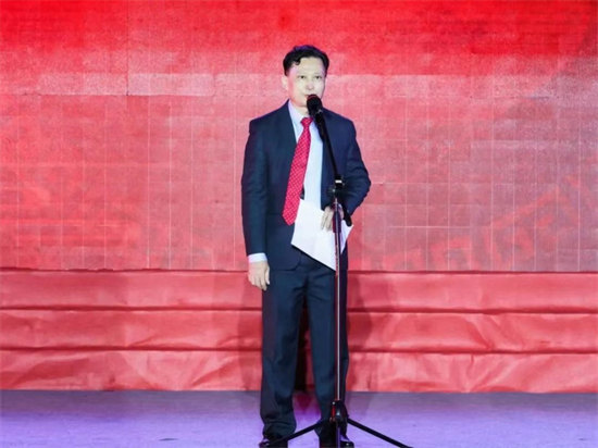 日本海南总商会会长符明潮在晚会上作为侨胞代表发言