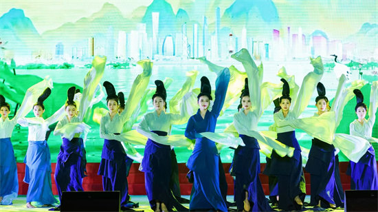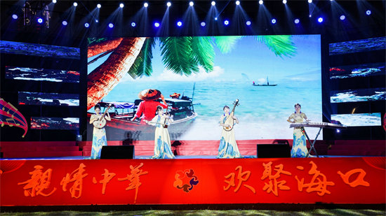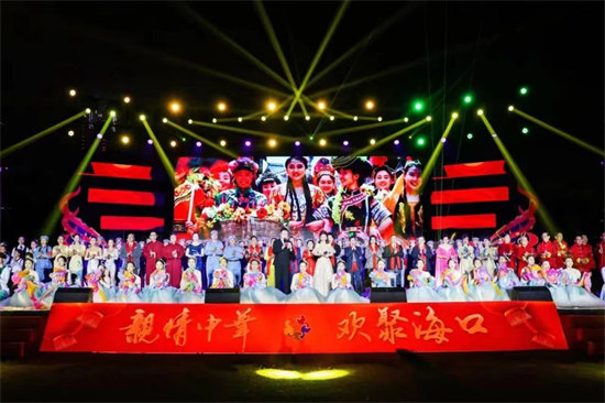 整场晚会集声乐、舞蹈、器乐、杂技、相声等节目于一体,内容丰富、精彩纷呈,充分展现了中国传统文化及海南特色文化的魅力。现场观众掌声连连,欢声笑语不断。开场舞《花开琼州》生动体现海口诗情画意的自然人文生态之美;海南特色歌曲《渔家姑娘在海边》《迷人的海岛》等融合器乐演奏,让人如痴如醉,畅享生命的灿烂;来自10个国家的华侨用多国语言演唱《我爱你中国》,表达广大侨胞“心系祖国,同根同梦”的家国情怀;《只此青绿》场景虚实交错、情感古今交融,让观众领略到新时代“千里江山”的壮美,从心底油然而生作为中华文化传承者的骄傲和自豪感;侨界书法家们现场挥毫,用传统艺术形式表达侨界听党话、感党恩、跟党走的坚定意志;相声表演《劳动号子》通过惟妙惟肖模仿劳动人民工作中发出的吆喝声,体现出劳动人民的乐观精神和大无畏的英雄气概;海南省侨联法顾委律师合唱团表演的节目长征组歌——《四渡赤水出奇兵》《到吴起镇》朗诵铿锵有力、歌唱气势恢宏,讴歌了中国工农红军不屈不挠、无私无畏的革命精神,闪动着最美的革命浪漫主义精神。最后,歌伴舞《欢聚一堂》《母亲是中华》将晚会演出现场氛围推向高潮,掌声、欢呼声不断,点燃了广大侨界群众为建设具有世界影响力的中国特色自由贸易港而努力奋斗的激情。