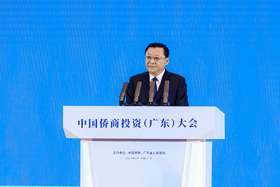 黄坤明指出,习近平总书记对广东寄予厚望,赋予广东在新征程中走在全国前列、创造新的辉煌的使命任务。广东认真贯彻落实党的二十大精神,全面部署以高质量发展为牵引高水平推进现代化建设。今天的广东,发展基础牢固、发展态势喜人,发展机遇巨大、发展潜力无限,营商环境优良、人居环境优美,广大侨商侨胞可以舒心放心安心在这里投资发展、创业生活。