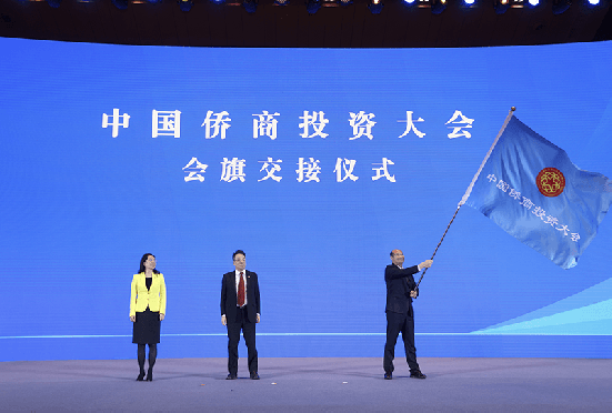 高峰论坛上举行了中国侨商投资大会会旗交接仪式。下一届中国侨商投资大会将于今年下半年在江苏省举办。
