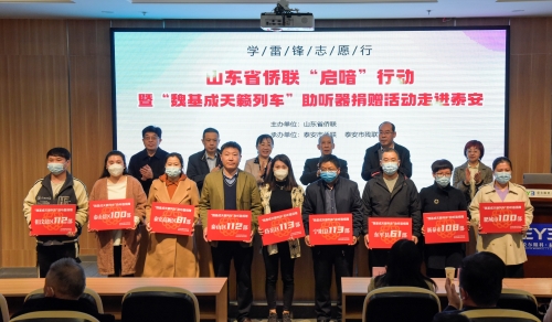 3月7日,在纪念毛泽东等老一辈革命家为雷锋同志题词60周年和第24个全国"爱耳日"活动开展期间,由山东省侨联主办,泰安市侨联、市残联承办的山东省侨联"启喑"行动暨"魏基成天籁列车"助听器捐赠活动在泰安顺利举办,现场捐赠助听器980多部,助听器捐赠方代表澳籍华人义工黄兆邦现场讲授佩戴方法并传授魏基成健耳按摩操。省侨联党组成员、秘书长鲁亚真,泰安市残联理事长侯卫国出席活动;市委统战部副部长、市侨联党组书记薛其福主持活动。