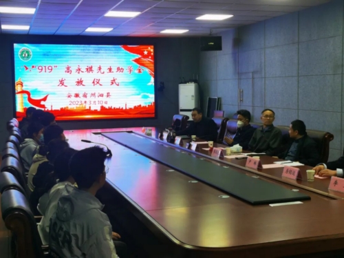 “919助学金”是原美国南加州山东同乡会名誉会长、山东省政协海外顾问、济南市侨联名誉主席高永祺先生于2017年9月19日设立的公益项目,也取谐音“就要救”(申明慈善属性),用于救助贫困乡亲和社会需求人员,已在贵州、四川、湖北、山东等国内多省市发放各类救助金200多万元,此次是首次来皖开展公益行活动。