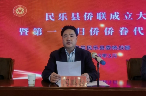 3月11日,甘肃省张掖市民乐县侨联成立大会暨第一次归侨侨眷代表大会召开。甘肃省侨联主席闫鹏勋,张掖市委常委、市委统战部部长、市政协党组副书记于永梅出席会议并讲话。