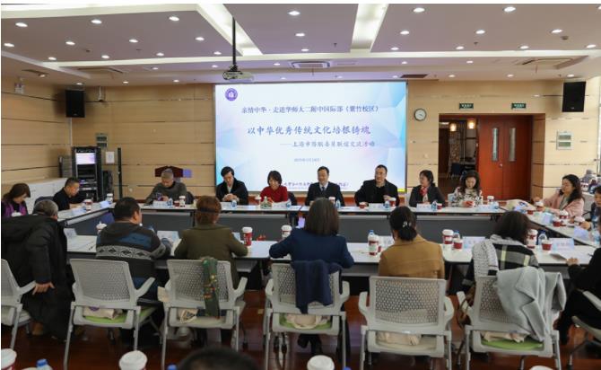 3月24日,上海市侨联举行主题为“以中华优秀传统文化培根铸魂”的委员联谊交流活动。活动中,侨联委员及侨界人士代表参观了华师大二附中国际部紫竹校区,围绕活动主题进行了座谈交流。