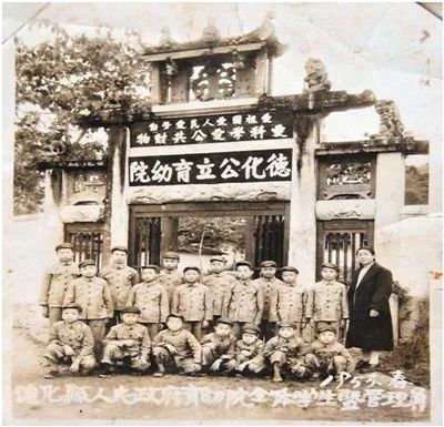 1953年春,德化凤林慈儿院师生在大门前合影(德化公立育幼院)。