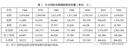 (摘自:邱玉鼎、段成荣:《1960年以来中国国际移民的变迁——以移民存量与目的地为主的分析》,《华侨华人历史研究》2023年第1期。注释从略,如有需要请参见原文。)