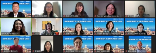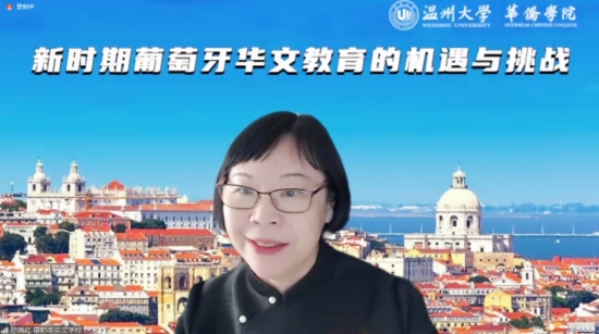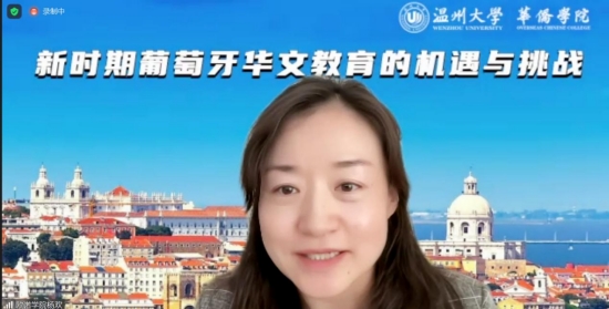 2023年4月27日下午,由温州大学华侨学院主办,浙江华侨网络学院、欧洲华文教育研究所承办,葡萄牙淑敏语言文化中心、里斯本中文学堂、博雅学堂、欧诺学院、中国桥波尔图中文学校、维拉贡德中文学校协办的“新时期葡萄牙华文教育的机遇与挑战”线上研讨会成功举办。中国驻葡萄牙使馆领侨处主任夏晚晴,葡萄牙华侨华人总会常务副会长胡胜武,里斯本中文学校负责人陈晓红,淑敏语言文化中心负责人韩淑敏,维拉贡德中文学校教师叶经,博雅学堂负责人石咏雪,欧诺学院负责人杨欢,中国桥波尔图中文学校负责人陈巧巧,葡萄牙阿尔马达市卡西利亚什特茹中学教师吴玉荣,葡华报社集团总裁詹亮,葡新报记者杨迪,主办方温州大学华侨学院院长包含丽、副教授胡春艳以及华侨学院教职工参加本次会议。