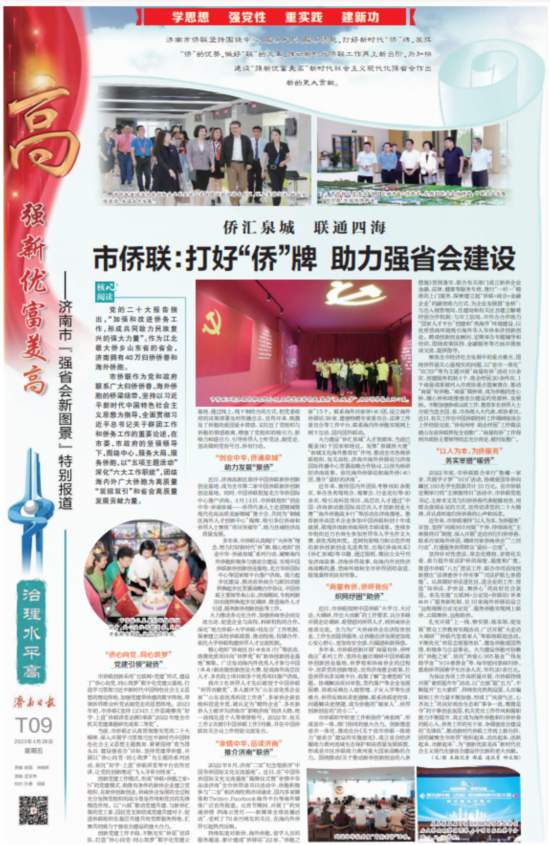 4月29日,《济南日报》“济南市‘强省会新图景’特别报道”栏目以“侨涌泉城 联通四海!市侨联:打好“侨”牌 助力强省会建设”为题,对市侨联近年来工作进行专版刊载。