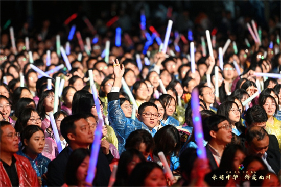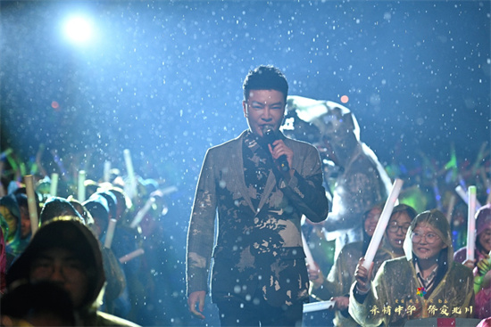 冒着大雨,艺术家热情不减。蒋牧含带来的女声独唱《阳光路上》《绒花》饱含深情,催人奋进,激励着我们继往开来,勇毅向前;来自平武的白马藏族舞《白羽毛述说》和来自北川的羌族舞《云中欢歌》体现了绵阳独具风情的地方民族文化,蒙古利亚组合带来的《黑骏马》《天堂》让全场观众耳目一新,感受到了来自草原的豪迈与激情;汤非带来的男声独唱《亲爱的小孩》《永恒的旋律》使台上台下融为一体;袁树雄带来的原创歌曲《早安隆回》使全场热情高涨;刘倩带来的女声独唱《感恩》《一片好风景》及李欣忆带来的女声独唱《你来了》《芦花》等精彩节目接连不断,令人沉醉其中,惊叹不已。北京京剧院领衔主演,国家一级演员胡文阁表演的京剧《梨花颂》和《霸王别姬》充分展示了传统艺术的美与震撼,词曲典雅,意境深远,回味悠长,感人肺腑。国家一级演员刘君侠带来的男声独唱《共和国之恋》《慈祥的母亲》将演出现场氛围推向高潮,观众掌声雷动,心潮澎湃。