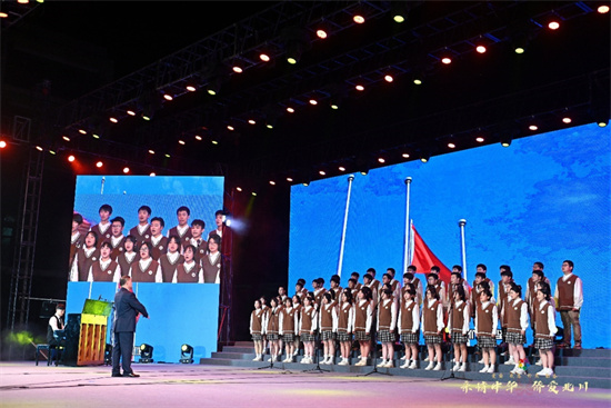 刘鹏及北川中学带来的朗诵《少年中国说》展现了新时代中国青年的蓬勃生机和青春力量,表达了北川学子感恩侨界大爱、立志报效国家的赤诚追求。演出在北川中学《北川中学之歌》《不忘初心》的歌声中落下帷幕。