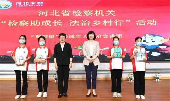 活动在全体学生齐唱未检主题曲《携长风予你》的歌声中拉开序幕。西柏坡中学校长韩爱忠为活动致辞。张岩部长和那艳芳厅长为学生代表们赠送了《未成年人保护法律全书》、《给孩子的第一本法律启蒙书》、《中小学生如何用法律保护自己》、《典籍里的中国》等书籍。河北省“冀望望”巡讲团成员、唐山市丰润区检察院未检办主任付丽娟以《树立法治意识 书写精彩人生》为题,通过播放小视频、分析真实案例、邀请孩子们现场演绎、现场朗诵等方式,给孩子们带来了一堂生动有趣、精彩纷呈的法治课,得到孩子们的积极参与和阵阵掌声,增强了孩子们尊法守法、守爱生命、自我保护的意识,活动获得圆满成功。