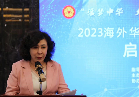米海尔古丽·阿吉宣布“追梦中华·大美新疆”2023海外华文媒体新疆采访行启动。