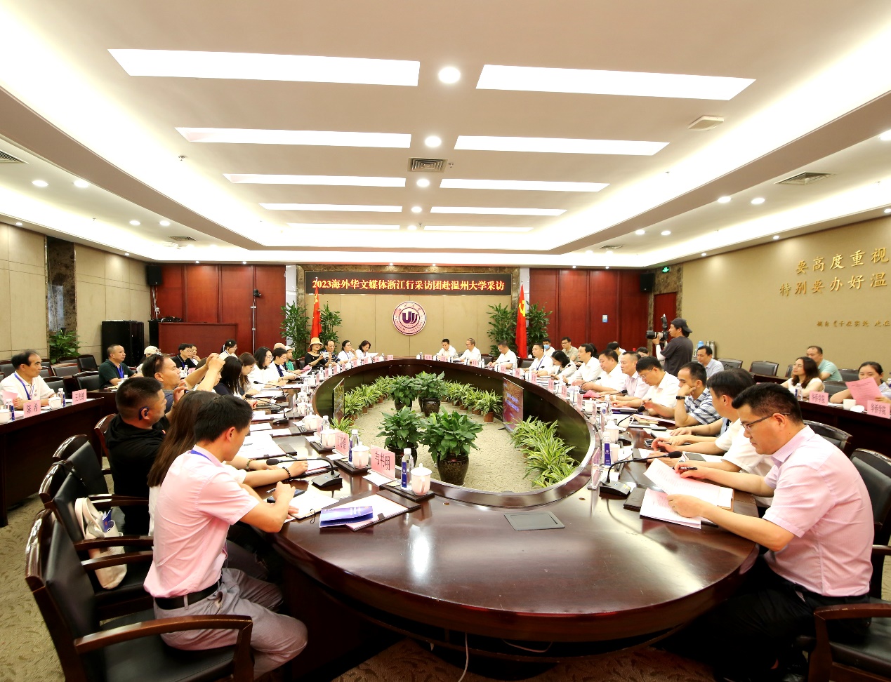 作为侨乡高校,温州大学与“侨”有着不解之缘。在温大参观时,采访团一行对学校坚持立足侨乡、服务华侨、面向世界,持续强化涉侨教育特色的做法给予肯定。“温州大学侨研究氛围很浓、这里有华侨学院、侨文化馆,对海外华侨华人子女的教育也做得非常贴切,他们也希望通过我们吸引更多侨胞子女到这里学习,我们回去后,也会宣传温大,促进华裔新生代到温大交流、学习。”埃及中国周报副社长朱新娥谈到。