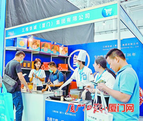 “哇,好香啊。”15日上午,中国(厦门)国际跨境电商展览会在厦门国际会展中心开幕。在三榕信诚(厦门)集团有限公司的展位前,热腾腾的鲍鱼产品刚出炉,不时有人驻足试吃了解。