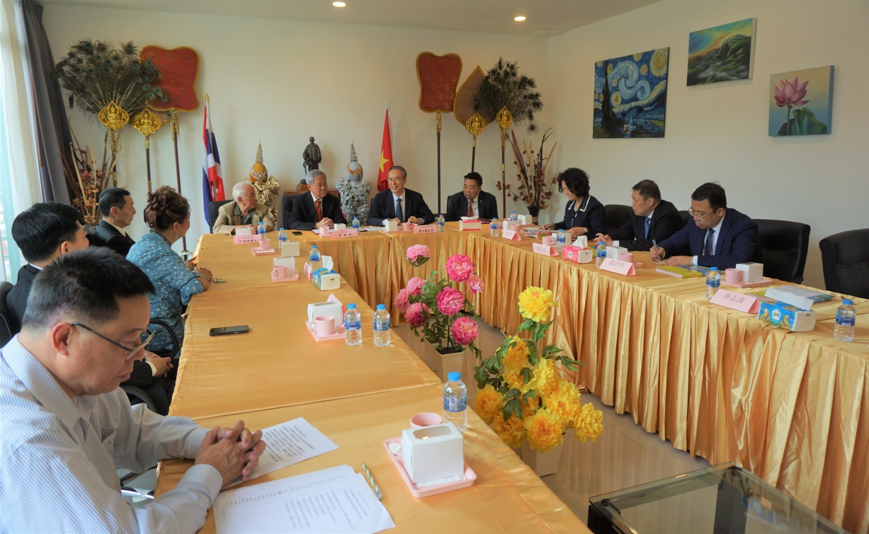 在泰中侨商联合会,会长邝锦荣向万立骏一行介绍了联合会发展情况。万立骏说,团结就是力量,无论是经商办企业,还是做好商会工作,团结都至关重要。他勉励联合会立足自身特点,找准发展方向,搭建更多平台,在团结联系新侨、促进泰中侨商组织交流合作、增进中泰友谊等方面发挥更大作用。