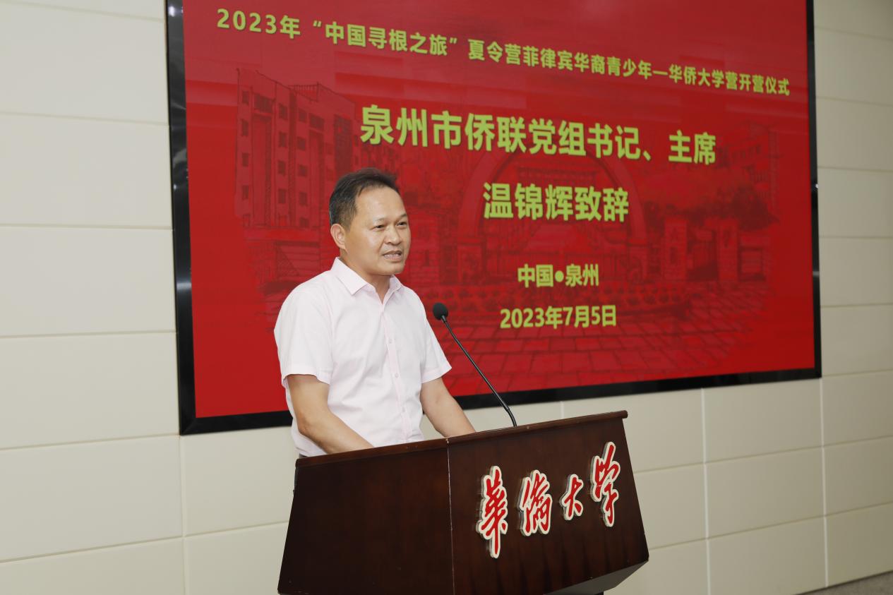 7月5日,由中国侨联主办,福建省侨联、华侨大学、泉州市侨联、厦门市侨联承办,菲律宾华教中心协办的2023“中国寻根之旅”夏令营——菲律宾华裔青少年华侨大学营在华侨大学泉州校区开营。来自菲律宾的28名华裔青少年相聚华侨大学,开启中国寻根之旅。