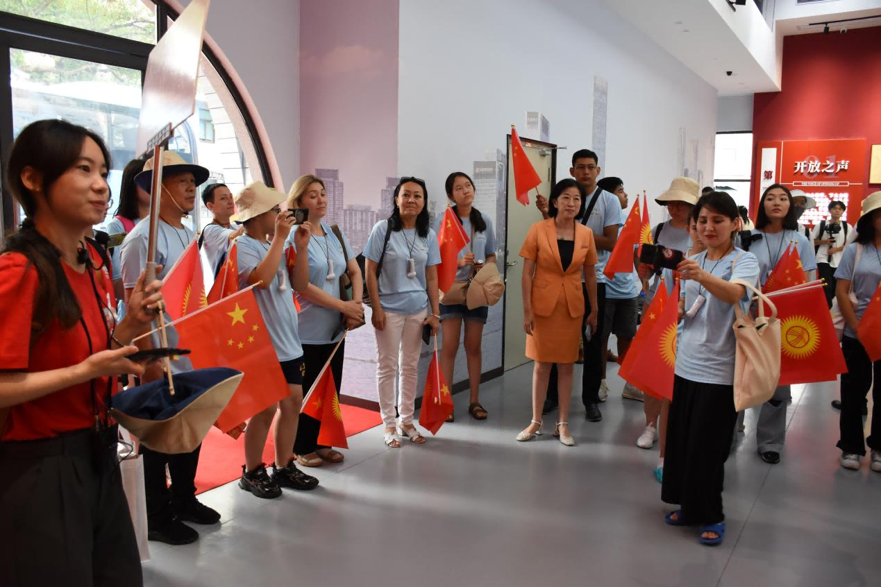 来自吉尔吉斯斯坦、乌兹别克斯坦的营员参观福州教育国际化探索与实践主题展