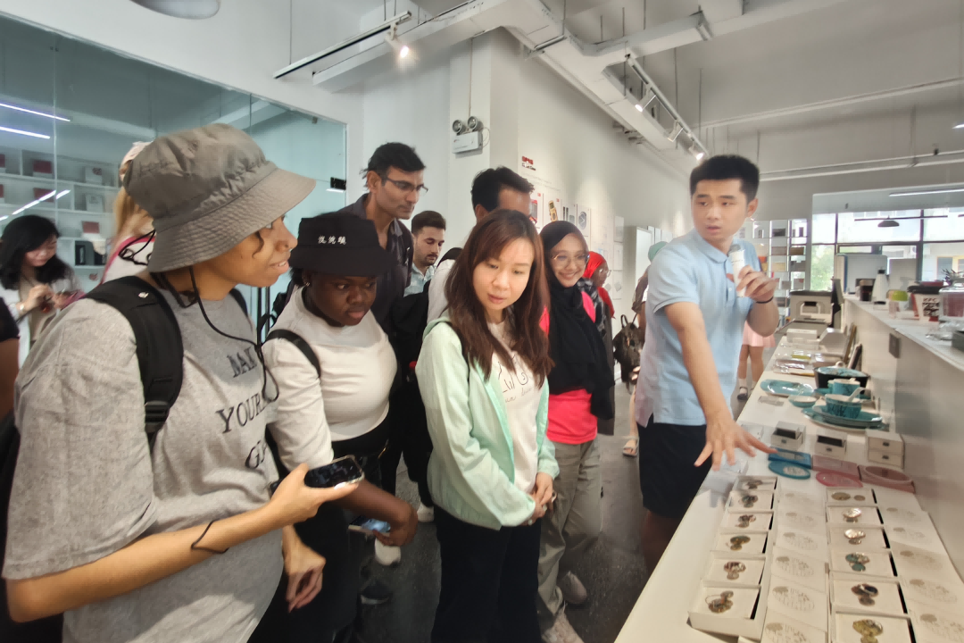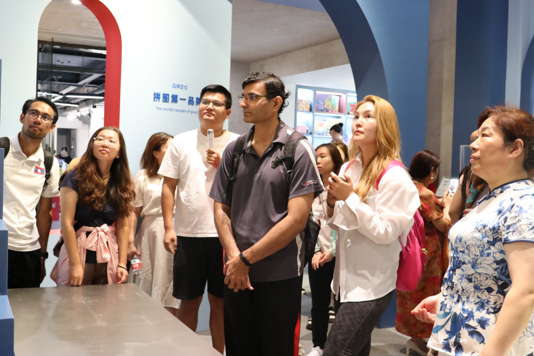 大家在侨智港·文化创意产业园(九车间)参观南京图益创意科技有限公司、南京木马工业设计有限公司的过程中,被新意十足的拼图所吸引,为各种创意设计产品驻足,真正感受到了文化和科技的深度融合。