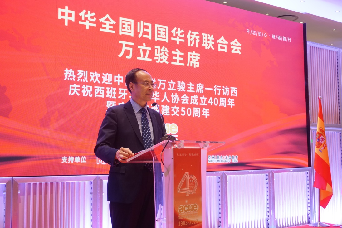 10日下午,西班牙华侨华人协会成立四十周年庆典活动在马德里举行,中国侨联万立骏主席,驻西班牙使馆姚敬大使、屈浔公参以及来自西班牙各地的侨胞代表出席活动。万立骏指出,西班牙华侨华人协会自成立以来,在历任会长的带领下,秉持“维护华侨的合法权益,维护华人社会的安定团结”的建会宗旨,在构建和谐侨社、弘扬中华文化、抗击新冠疫情、促进中西经贸文化交流等诸多领域做了许多有益工作,夯实了两国关系发展的民间基础。