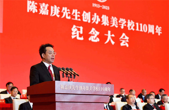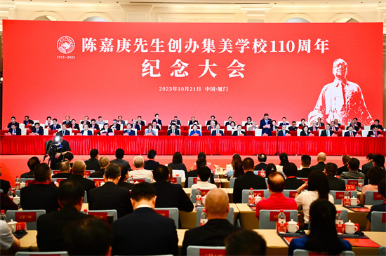 10月21日上午,陈嘉庚先生创办集美学校110周年纪念大会在厦门举办。全国政协港澳台侨委副主任崔玉英,中国侨联党组成员、副主席连小敏,福建省委常委、厦门市委书记崔永辉,福建省人民政府副省长常斌,厦门市人大常委会主任杨国豪,厦门市政协主席魏克良,以及中央和福建省、厦门市有关领导,陈嘉庚后裔参访团等海内外嘉宾、集美校友、集美学校师生代表700多人参加大会。厦门市委副书记、市长黄文辉主持大会。