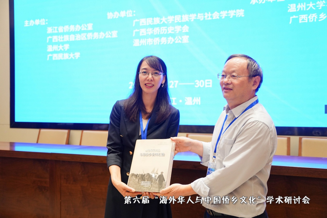 红河学院/云南侨乡文化研究中心主任何作庆教授向温州大学华侨学院赠送最新研究成果。
